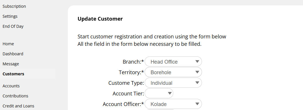 - Click on ‘Customers’ menu from the list of menu items by the right side panel of the system