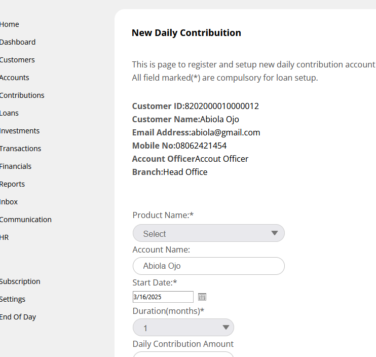 After the steps above, the savings account will appear on the customer page under the savings tab.