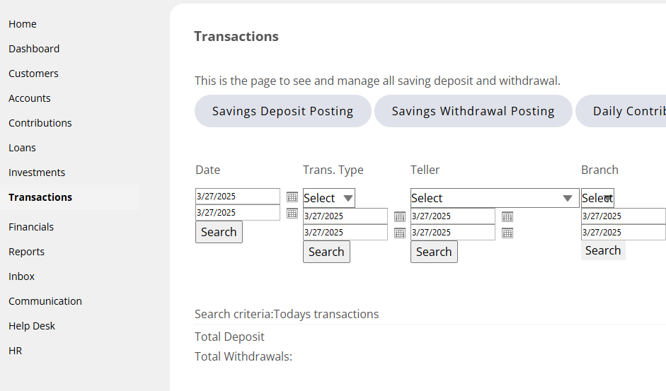 All transaction posted can me recalled under the Transactions page on FinServ.